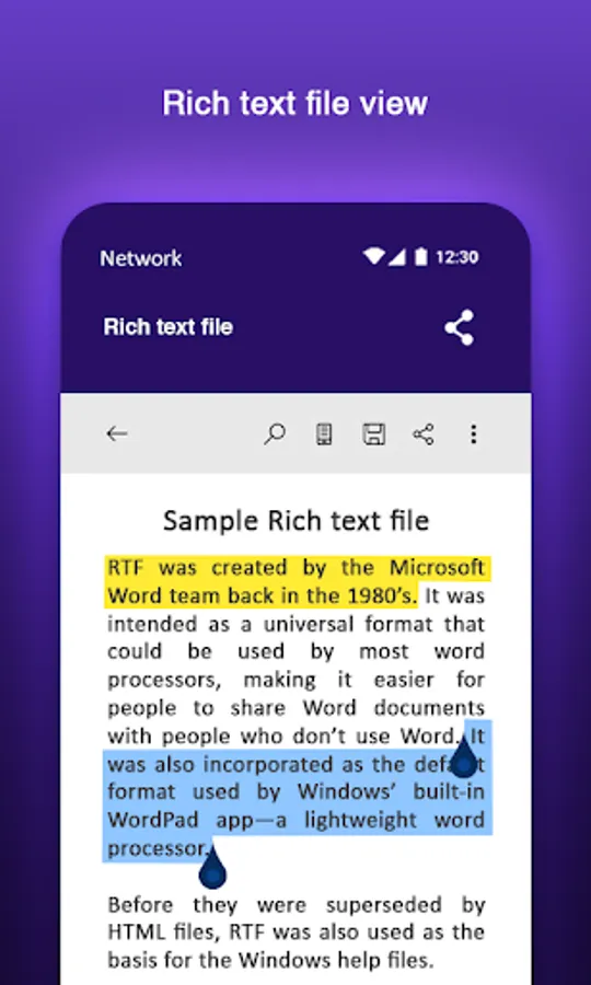 Review document easily that is of RTF format in document app that helps as like document reader to users in reading rich formatting or text document word files in doc reader. Get RTF reader for android & start reading, viewing RTF files on the phone easily. The more enhanced RTF viewer also offers its services in multiple languages along with a sharing document feature as well for user ease.