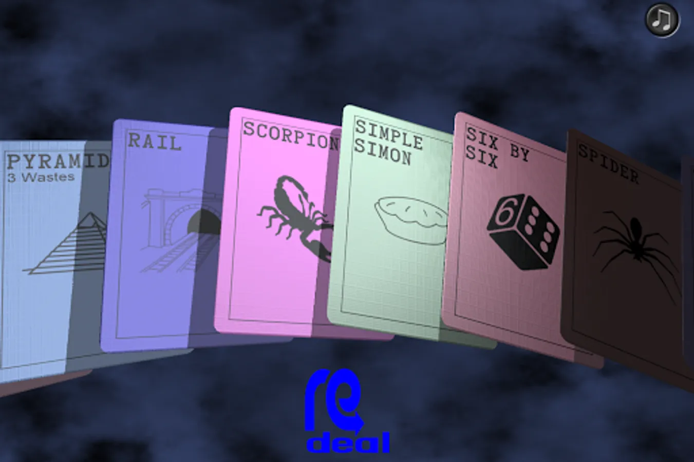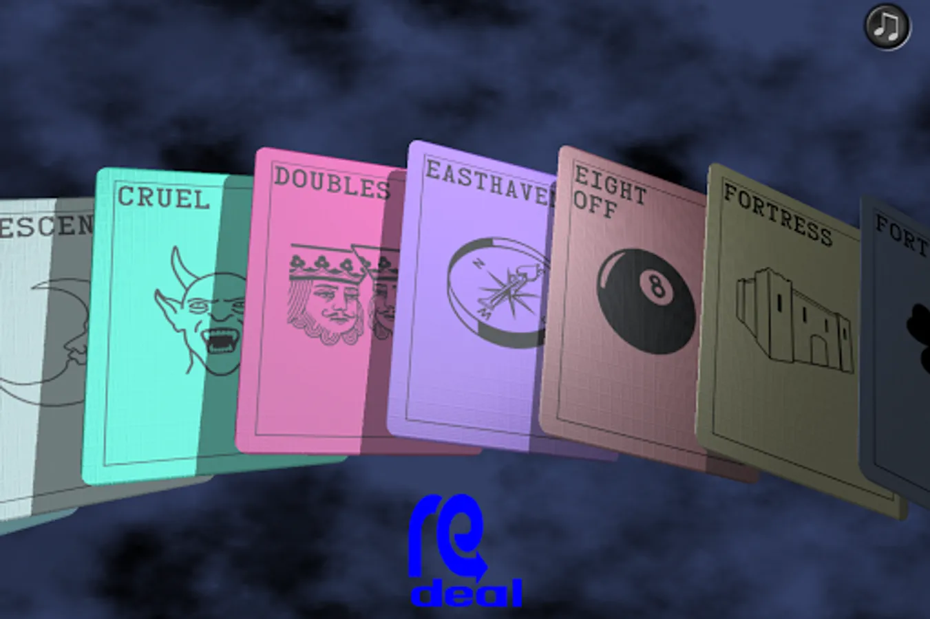 Redeal is a compendium of 50 solitaire games presented using superb 3-dimensional graphics and realistic card motion.