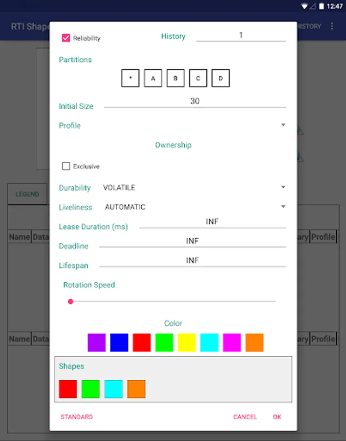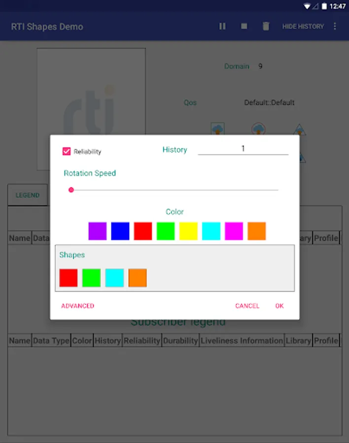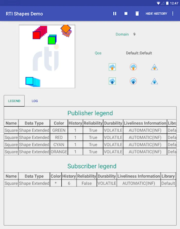 Connext DDS offers flexible and fine-grained control over Quality of Service (QoS) parameters. No one application can showcase all the supported QoS parameters. Shapes Demo is intended to provide you with an abbreviated introduction to Connext