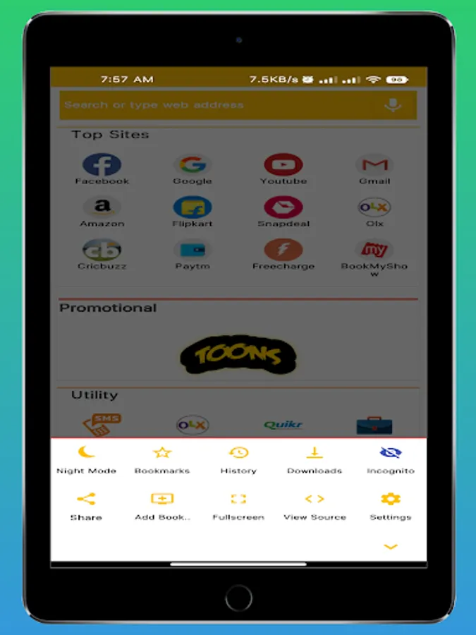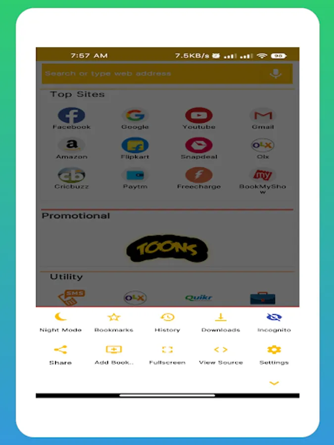 Rapid Turbo Internet Browser Is Fastest Web Browser Simple UI, Top Sites BookMark & RTI Browser is best for Privacy & Fast Download.
