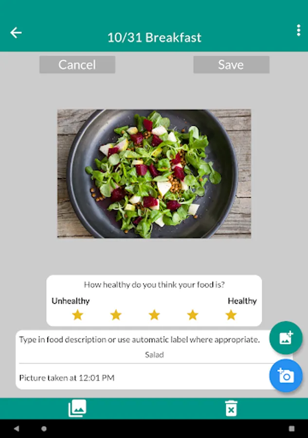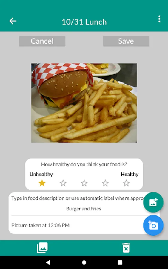 UNLV Food Photo Logging App designed to track participant eating and sleeping habits over a period of time. Image and sleep data are automatically uploaded to researcher cloud and stored on device.