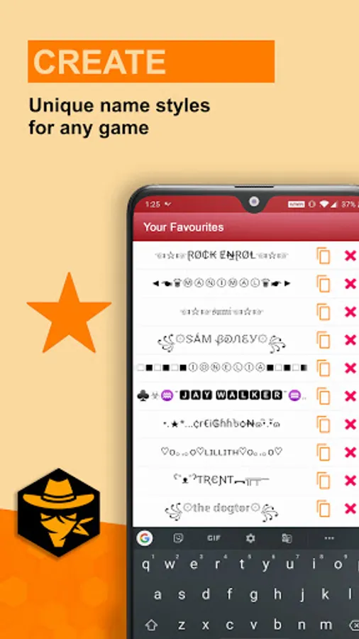 The Symbols Creator ⚡ Nickname Generator for Gamers app generates tons of cool results for gamers. The main features include:
