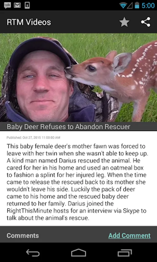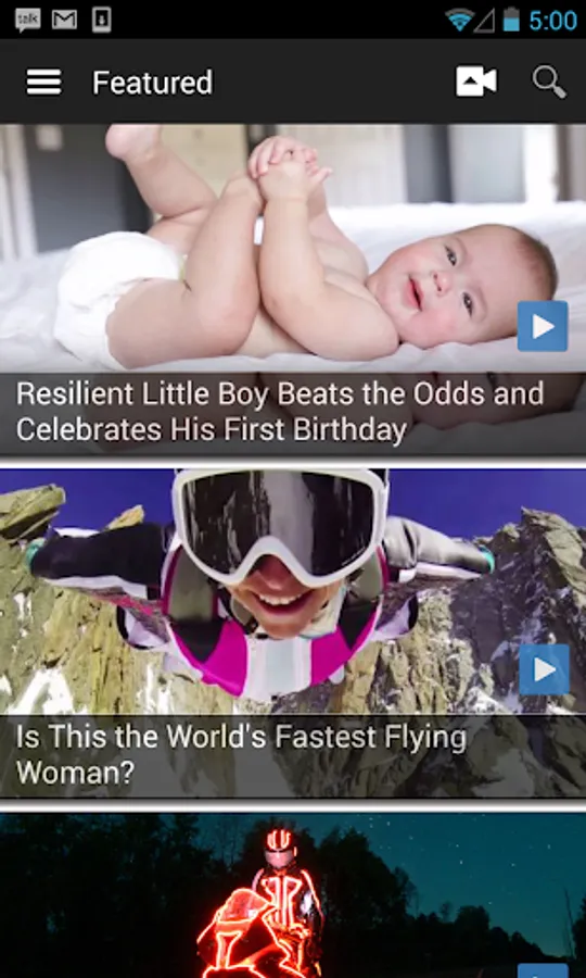 Watch, upload, and share the hottest videos of the web right from your Android phone or tablet. The free RightThisMinute app brings you a daily dose of the latest videos, before they go viral. RightThisMinute is a nationally syndicated television show and 24/7 website that finds the best videos and the stories behind them, bringing you fresh content by the hour.