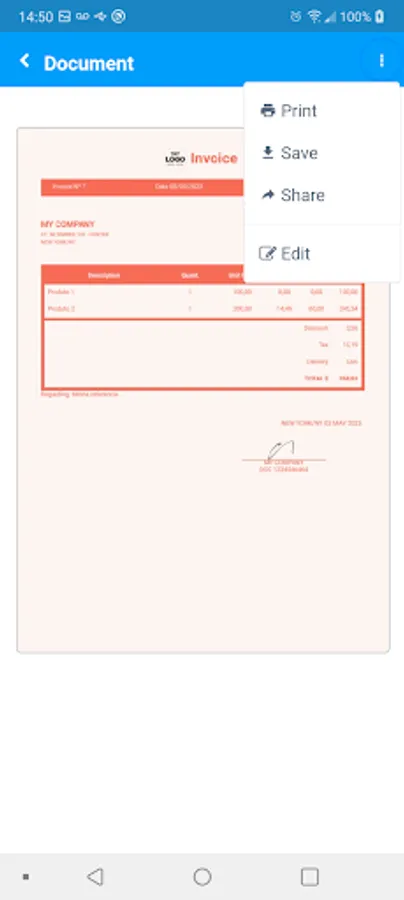 Generate invoices or budgets of products for your customers simply and quickly. Sending directly to your client's WhatsApp or email.
