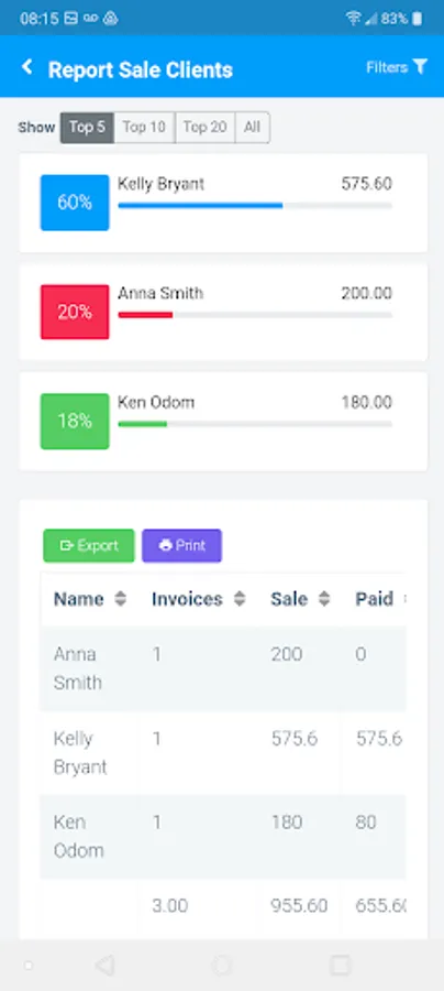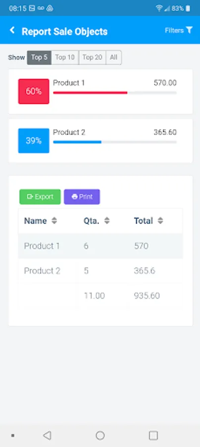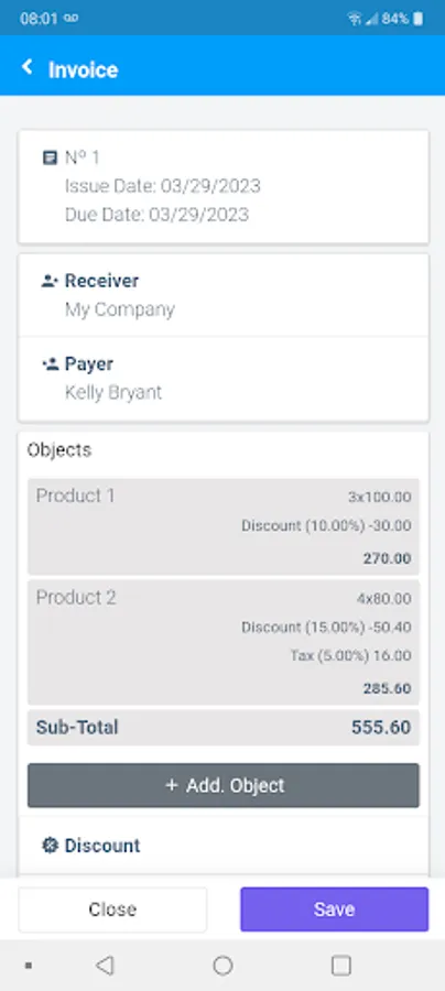- Reports: Invoices; Sale by Customer; and Sale by Object;