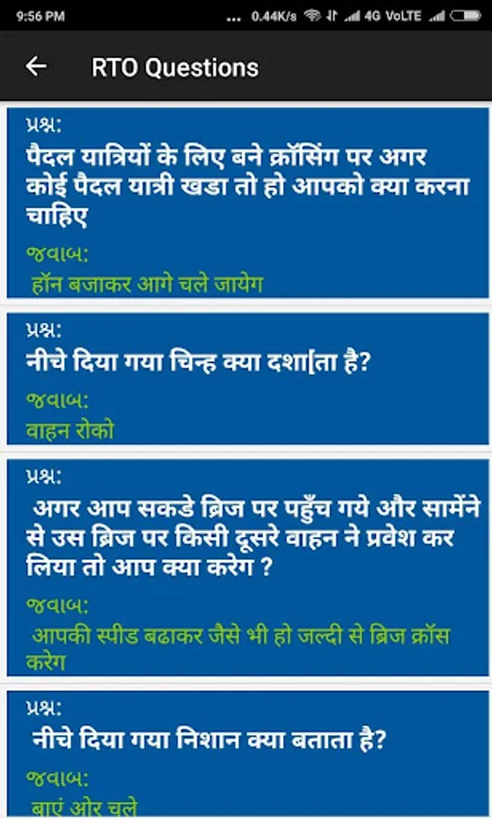 This app has all latest rto exam questions.In market there are many rto exam book but they have few questions. This app has learning licence test questions and answers