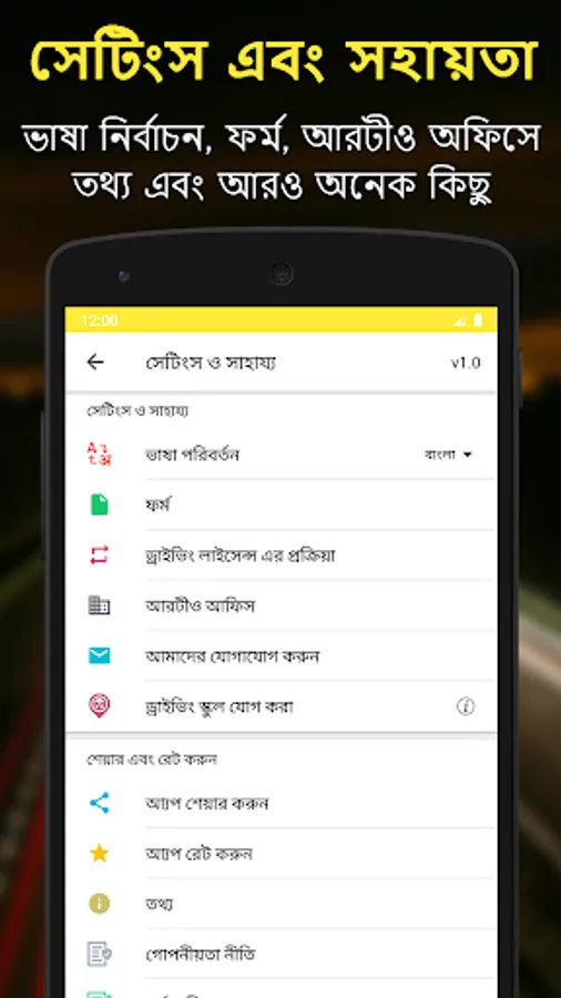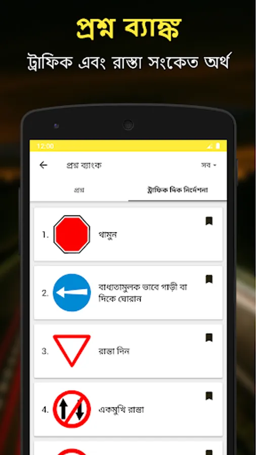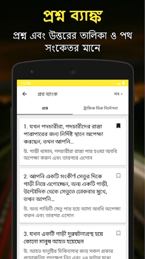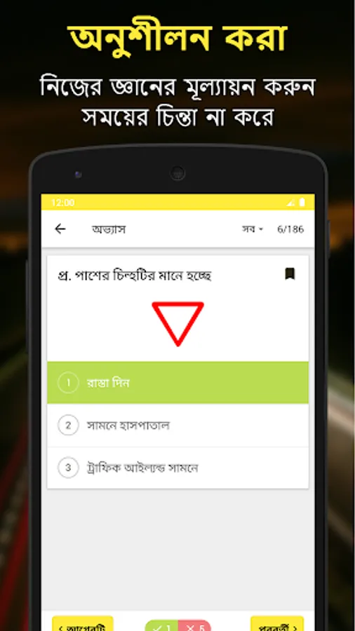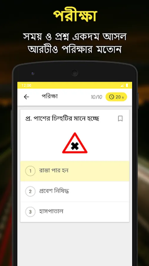 RTO Exam Bangla is a Driving Licence Test practice app available in Bangla (বাংলা), Hindi (हिन्दी) and English. Are you appearing for Learning Licence Test in RTO West Bengal and willing to practice before actual RTO test? Look no further than RTO Exam Bangla. This app has been especially created for RTO West Bengal and it offers largest collection of learning licence test questions and answers, road signs and their meaning and other useful information in Bangla (বাংলা), Hindi (हिन्दी) and English.