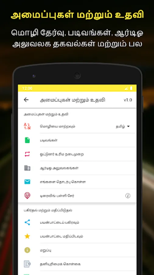 Language Selection: You can switch between Tamil (தமிழ்) and English languages anytime! App will display information in language of your choice.