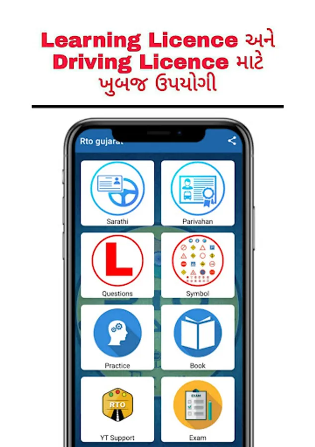 RTO Gujarati App is very useful to obtain driving license from RTO within Gujarat, All RTO Office conduct theory exam of driving license on computer base. It is also useful for Learning License of Light Multirole Vehicle (LMV), Heavy Motor Vehicle (HMV).Here we have give two mode Learning and Test mode for you to be aware about RTO exam and remove fear of failing and pass your RTO Driving license Test with full confidence