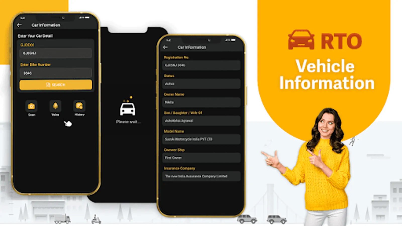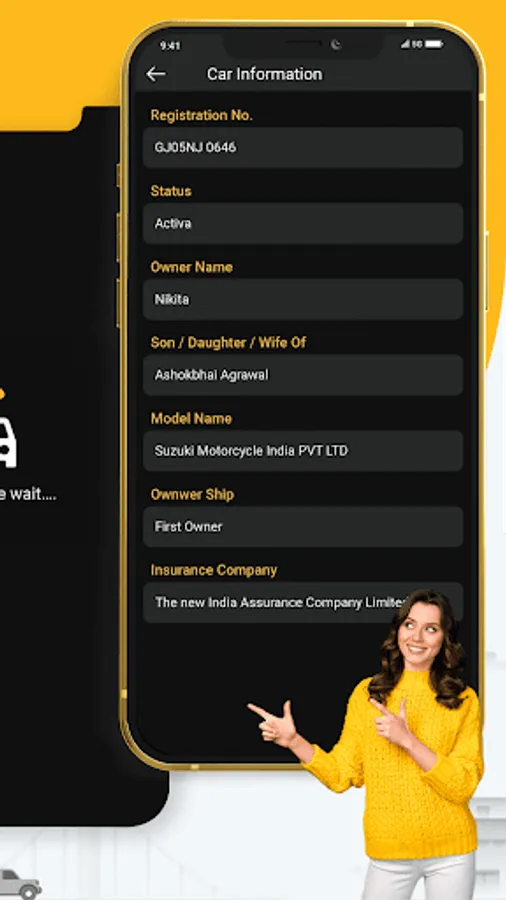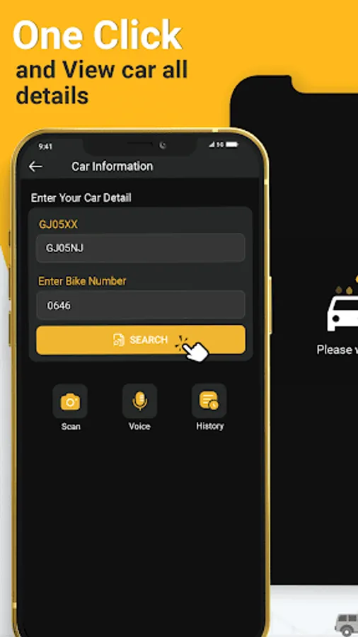You can get the resale value, loan amount, and e-challan details of your vehicle with just one click. You'll be able to see information about the vehicle owner, such as their name and address, saved documents, vehicle model, class, insurance, engine details, fuel type, and search history. Identify the vehicle by scanning its number plate.