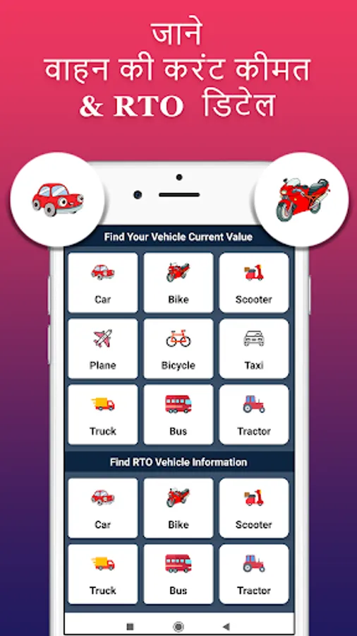 Calculate the right price for your car, bike, Truck, Scooter, bus, tractor, plane, taxi or even bicycle through this vehicle valuation app.