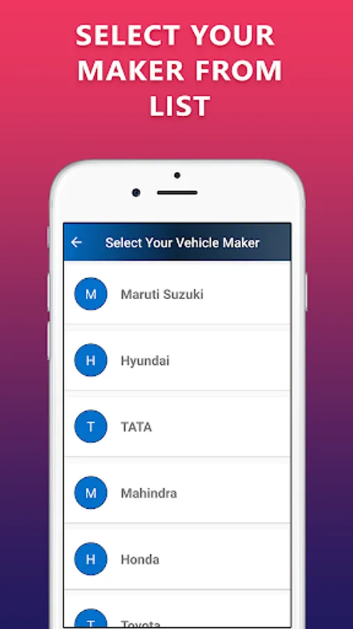 Step 2) Then Select Your Vehicle Maker Name (Like Maruti Suzuki/Honda/Hero etc.)
