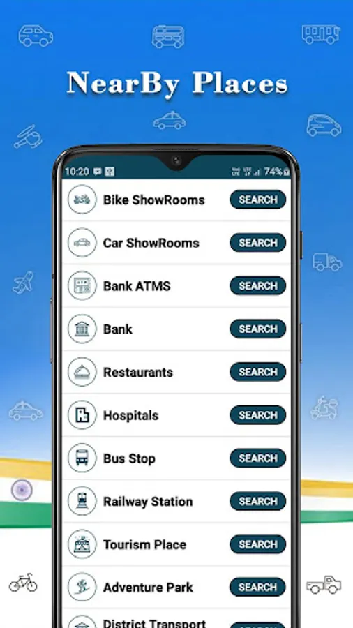Show Places near by you like Bike-Showrroms, Car-Showrroms, Hospitals, Restaurants, Banks, Bank Atms etc.