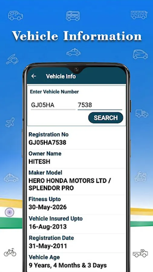 This app Will give you the below vehicle registration details by giving vehicle number: