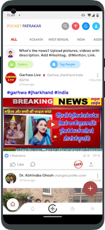 Pocket Patrakar is a free Citizen Reporter App for people to share local news, images, videos about whatever is happening around them and everywhere. Patrakar's, like Citizen Reporters, can share photos, video or text about what they see around. They can create events, blogs, pages and groups to facilitate discussion and sharing of news. To maintain credibility and stop propagation of fake news, there is option for viewers to report and contradict anything that has been published. Pocket Patrakar intends to create a healthy, truthful and open shared space for sharing news about anything that's current or relevant to the world we live in.