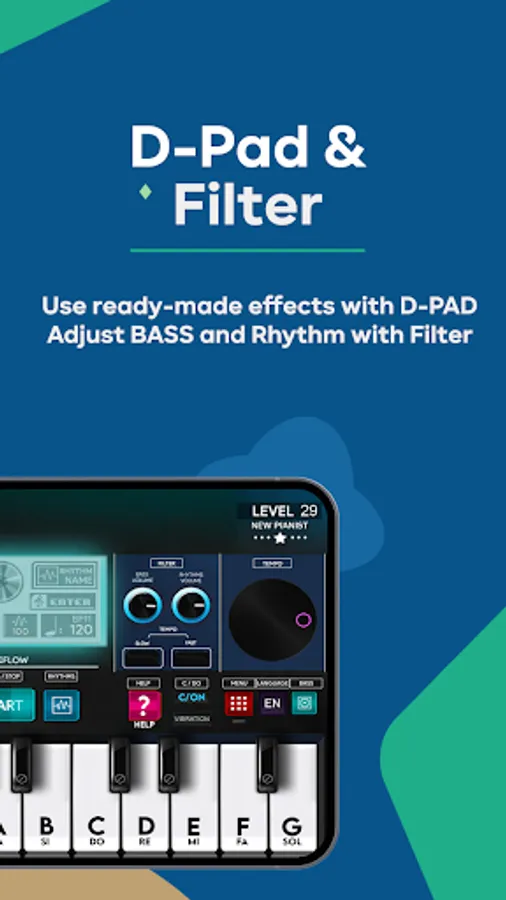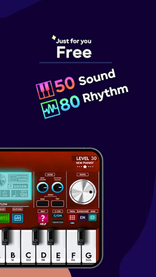 - Flashing notes (NOTA LESSONS): Learn and play songs you don't know.