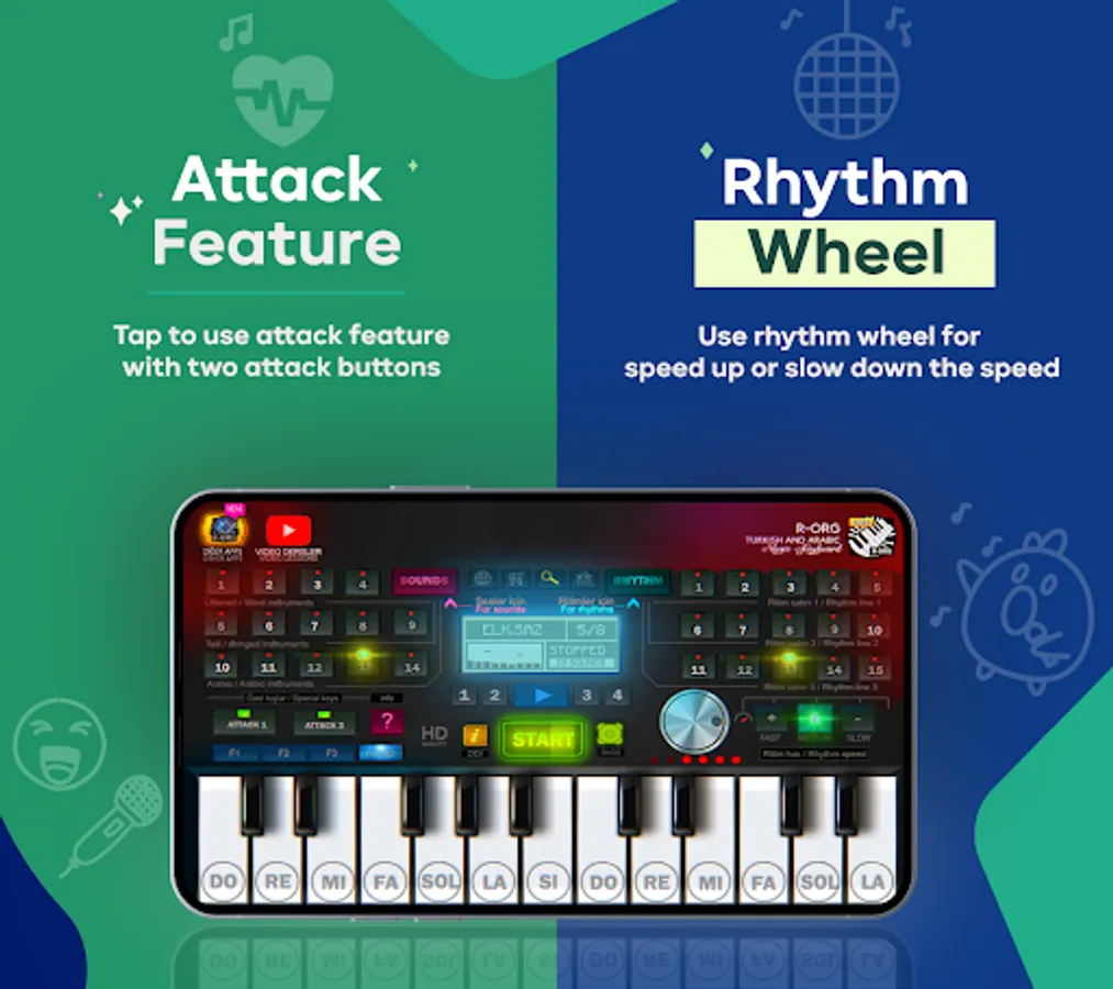 It contains; 14 sounds and 15 Turkish and Arabic rhythms.