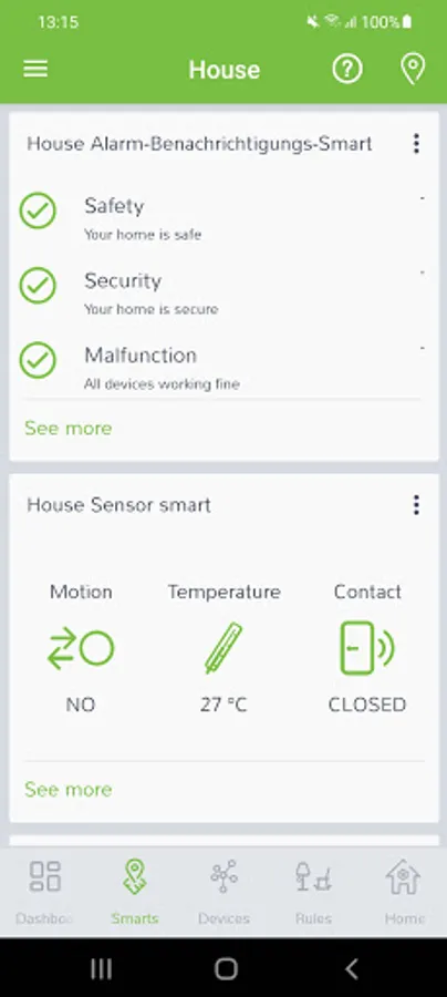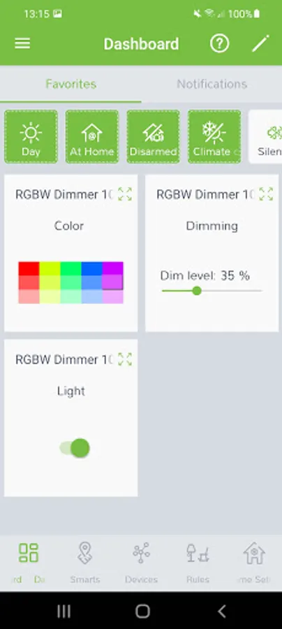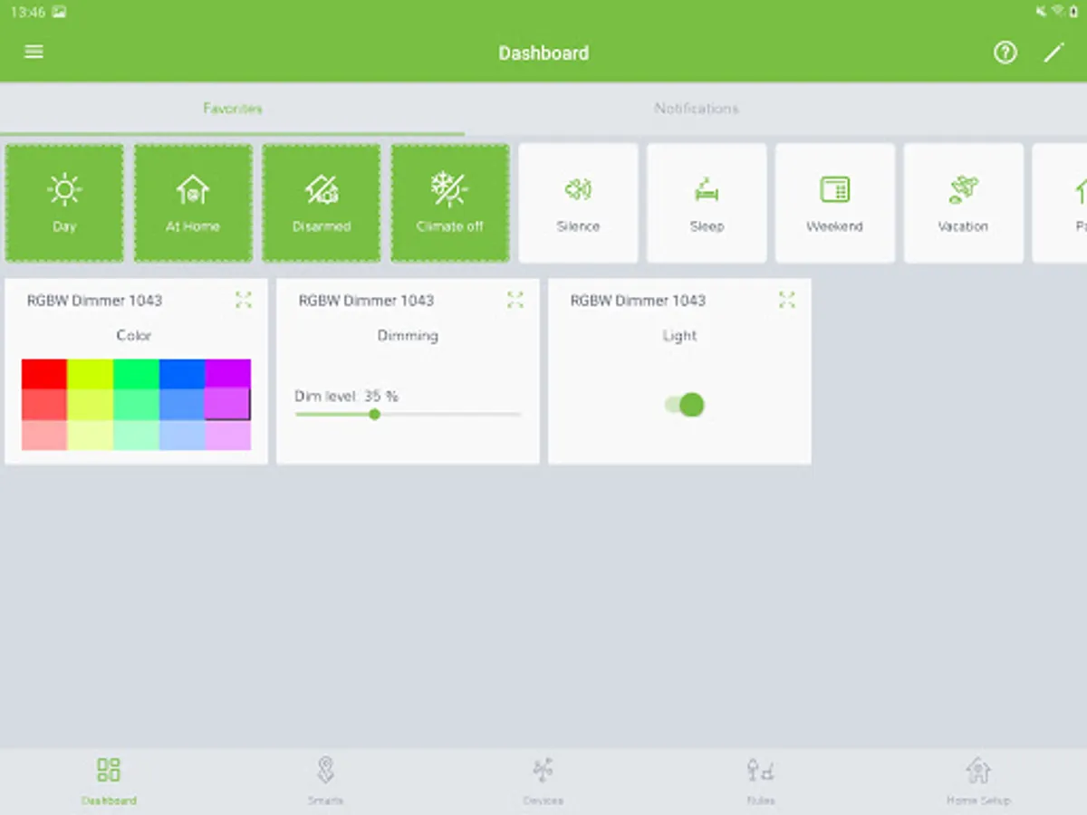 - Create your own scenarios, such as "Away", "Night", "Vacation" etc…