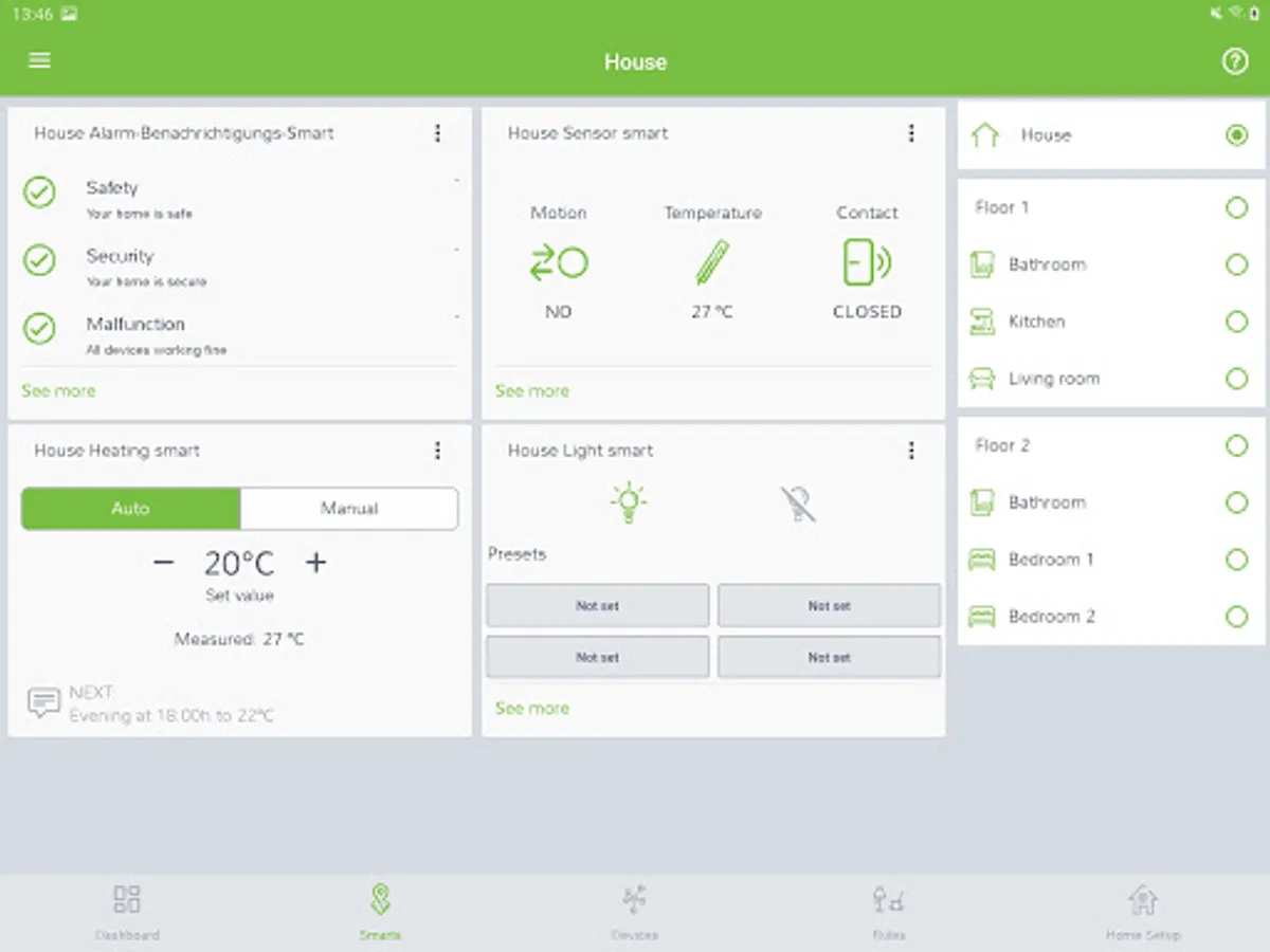 The Cockpit application can be used either through the mobile network or through the WiFi network of your smart home, using a variety of tablets and smart-phones.