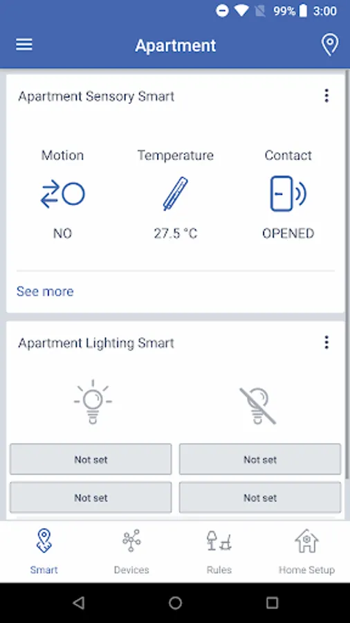 Keemple also uses all kinds of sensors to keep you updated on what's going on in your home, such as motion, smoke, flood and even cameras. We can also use these sensors to automate your home, so when you walk in the door, the lights will automatically turn on.