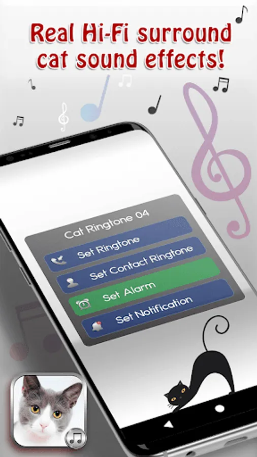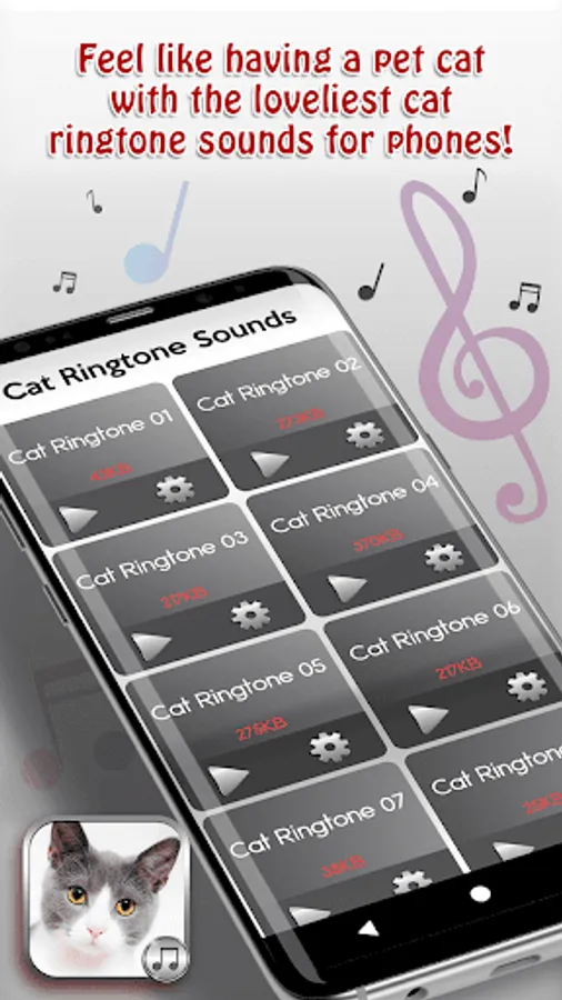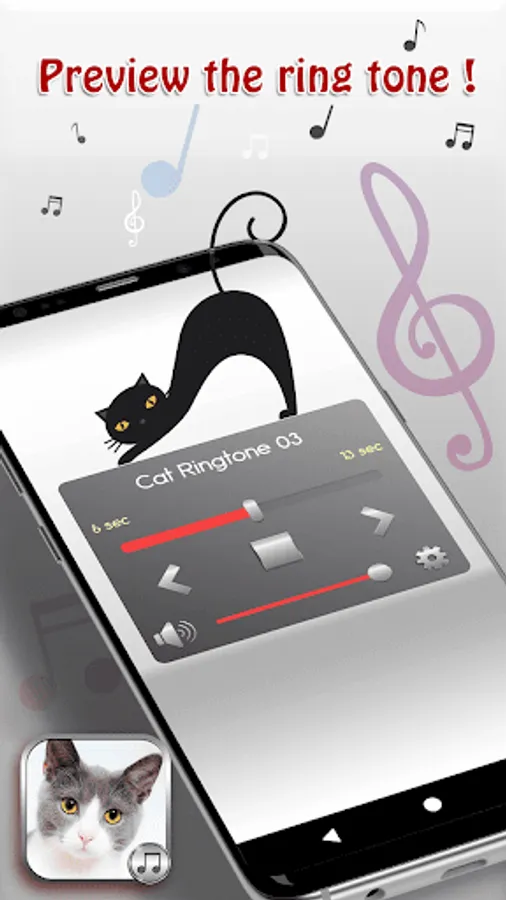 Turn your phone into a cat simulator playing the most popular Cat Ringtone Sounds and SMS notifications and tones! Be delighted every time your phone rings or when you receive an SMS notification! Have the most beautiful cat ringtones and short message tones on your device! Play with your pet cat by listening to all the cute cat ringtones! If you are tired of the same, old phone ringtones, try something different – Cat Ringtone Sounds! Use all the cool cat ringtones to change your incoming call notification alerts, SMS sounds, chat ringtones or alarm clock sounds, or use this cat ringtone app to play with your pet cat all day long!