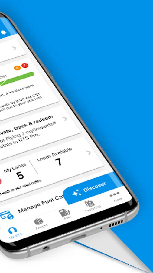 The only trucking app you need, RTS Pro has all the essential tools to help you revolutionize your business operations. Discover fuel savings wherever you go, upload invoices for same-day payment and search and book loads through our exclusive load board.