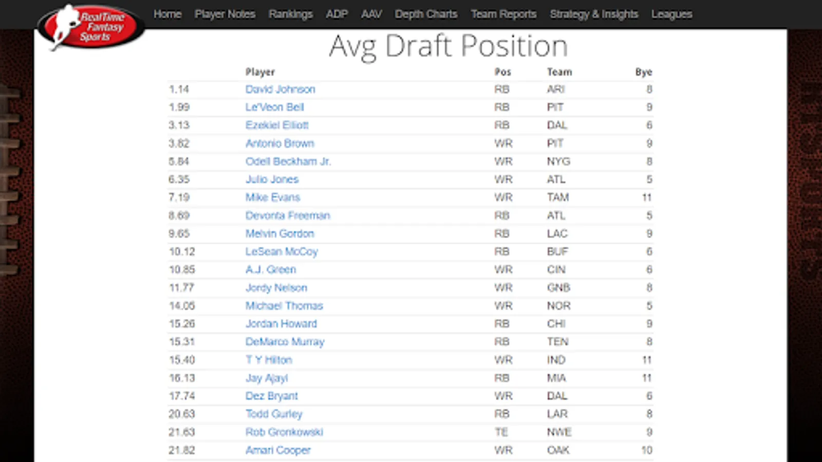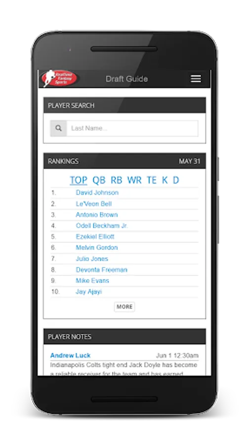 A free 2022 fantasy football draft guide, with updated news, breaking news notifications, player notes, and analysis as well as expert rankings, ADP, and auction values. All information is updated every day by RealTime Fantasy Sports.