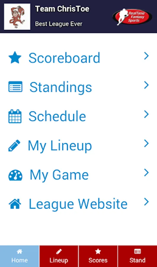 • Easy access to all other league features via the web