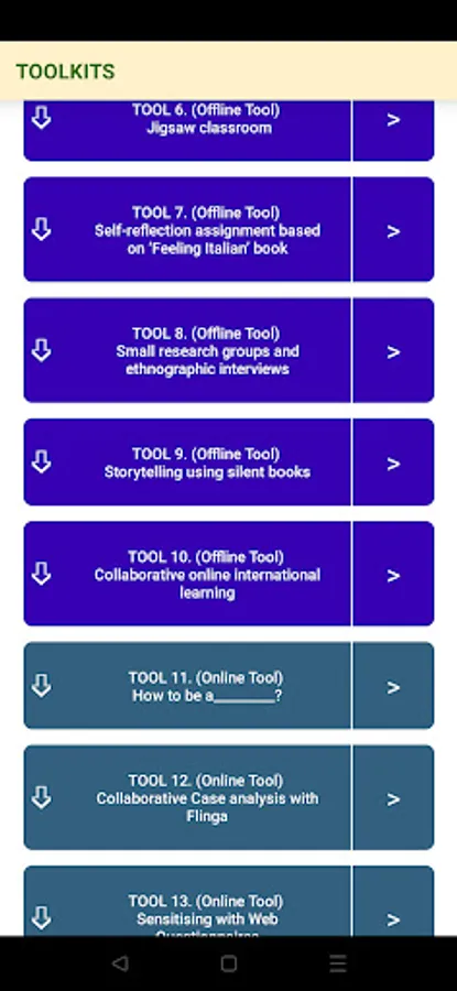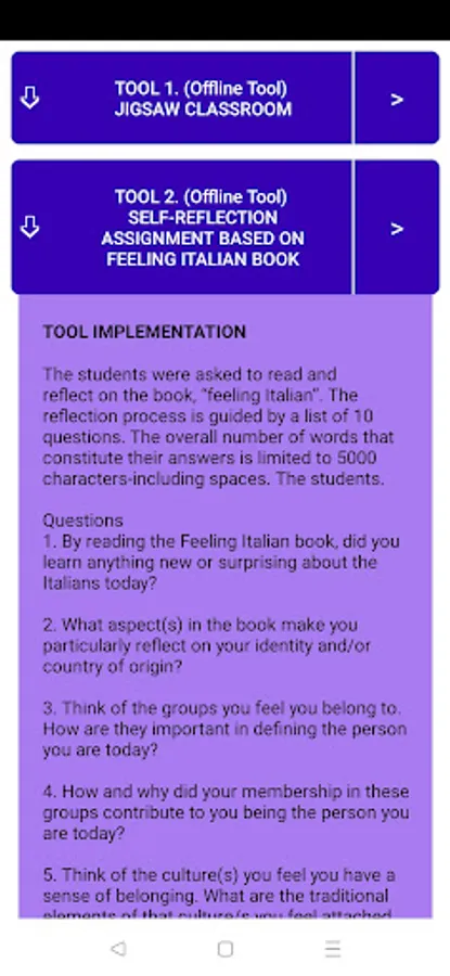 The WeLearn app was also developed based on intercultural and Neighbourness findings. The app was developed in cooperation with European teachers, who were also developing the WeLearn toolkits. WeLearn consortium wanted to develop easy access and compact solution, which allows teachers to access WeLearn tools anywhere.