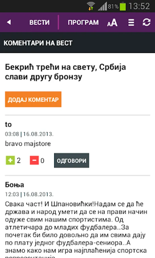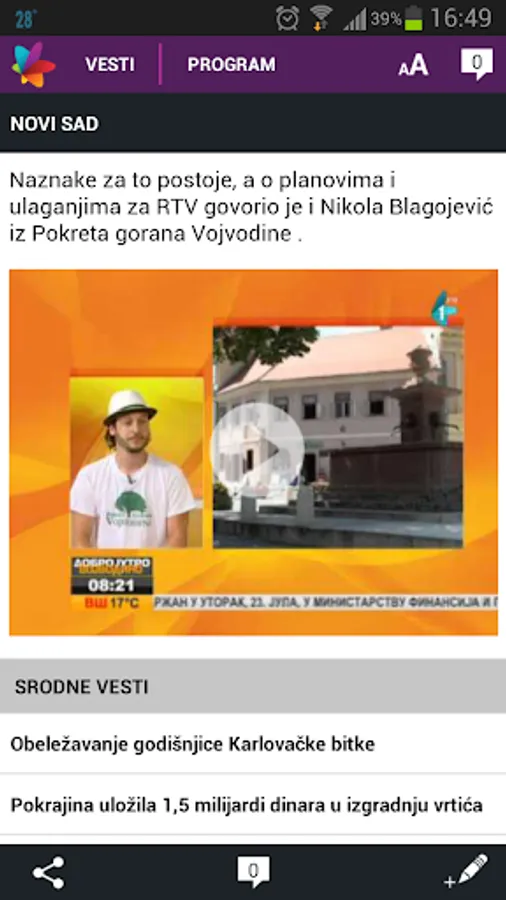 Follow the current news from Vojvodina, Serbia and the world, see the latest stories from our correspondents throughout the Province, comment, follow the weather forecast, exchange rate list, get information about the program schedule of our two TV and four radio channels, watch and listen live to our programs, and what miss out waiting for you on delayed viewing and listening.