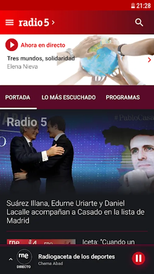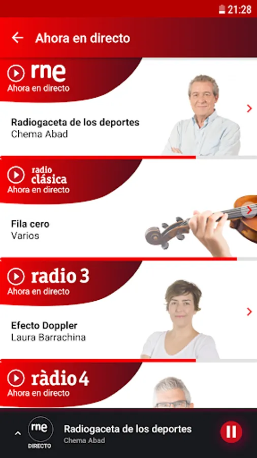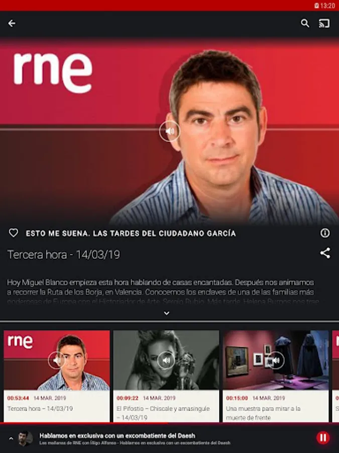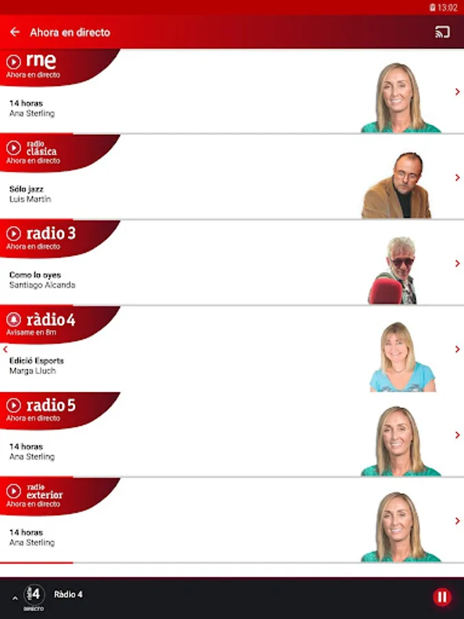 All the National Radio stations of Spain (RNE) live and "A la Carta" on your Android. Connect with live programs and listen to podcasts whenever you want.