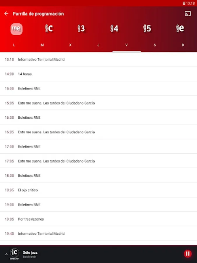 Classical Radio: Classical music, jazz, flamenco, zarzuela, opera.