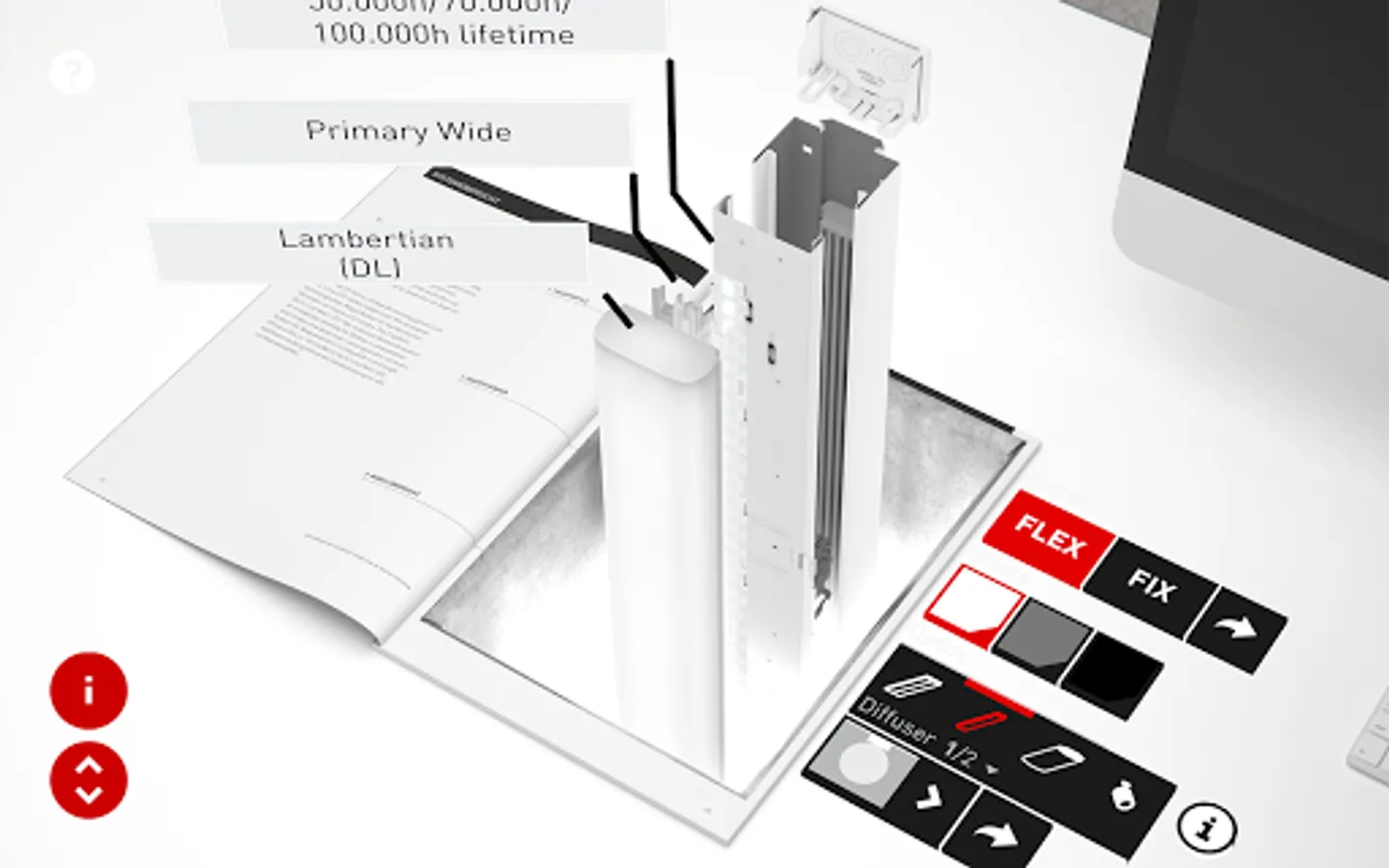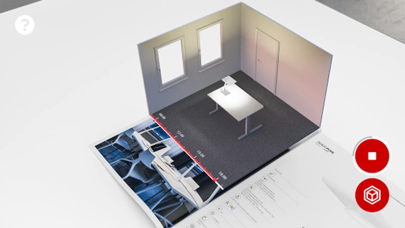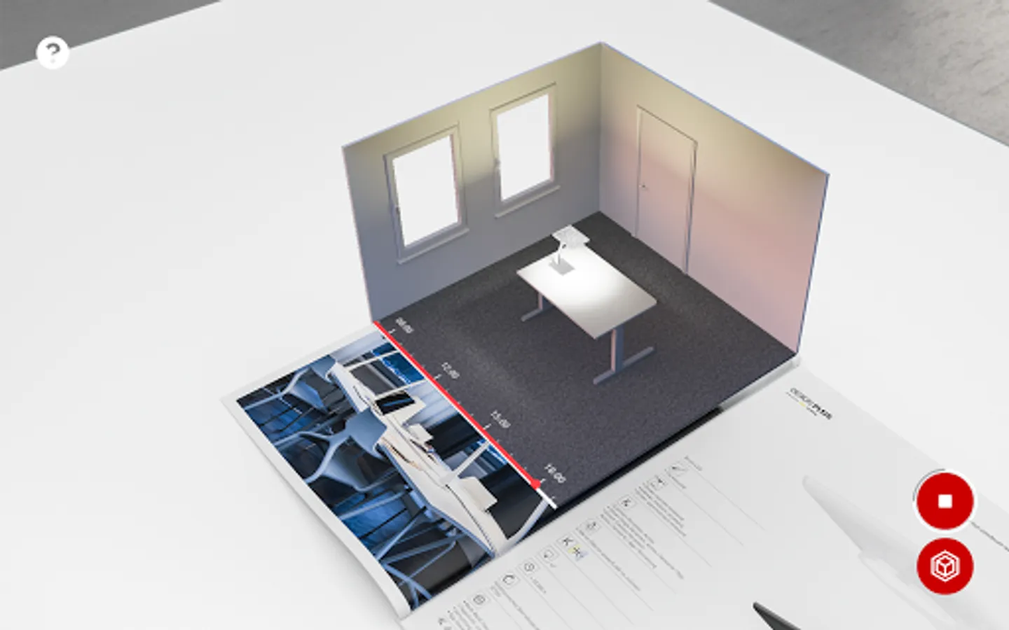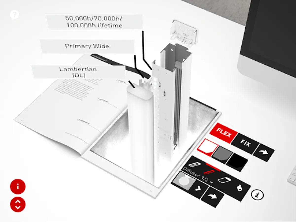 If you are interested in experiencing the augmented reality function please visit our website and order or download and print our AR-capable brochures and catalogues at www.trilux.com/catalogues. Start the AR app, and scan the application and/or product pages of the products marked with the AR symbol in the brochure/catalogue with the camera. The 3D model is displayed as soon as both angle and distance are correct. Click on the symbols and let the TRILUX world surprise you!
