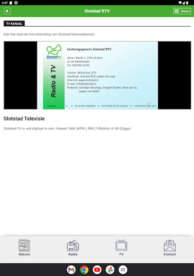 Download the Slotstad RTV app for the latest news, sports and information from Bunnik, Odijk, Werkhoven, Austerlitz, Bosch en Duin, Den Dolder, Huis ter Heide and Zeist.