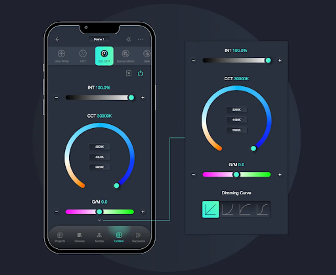 With the RTctrl control App you don’t need to be an engineer to create complex lighting setups. Change the way you work with lights, create complex lighting setups with a simple to use interface and bring your lighting ideas to life easily.