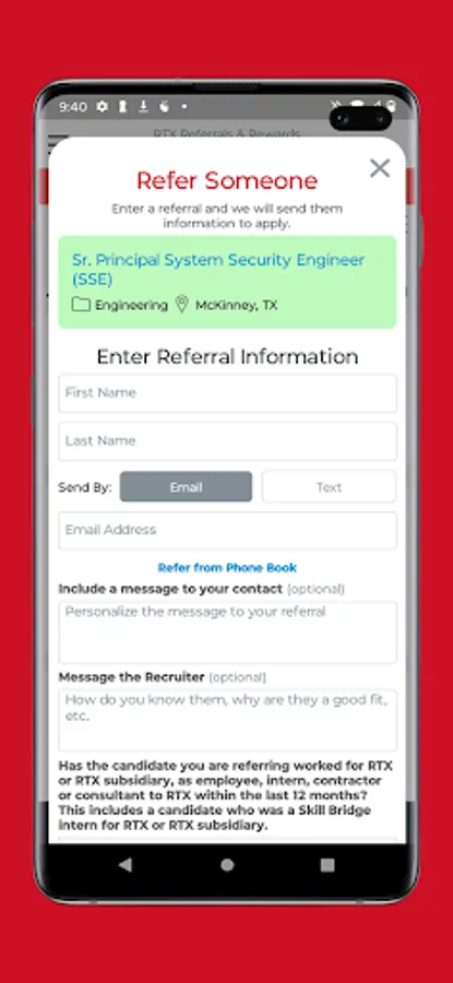 RTX Referrals & Rewards is an easy way to refer friends and colleagues for open positions. With our app, track referral status, earn rewards for successful hires and share job openings on social media with our integrated feature. By using RTX Referrals & Rewards, you can play a vital role in building a talented workforce and contribute to the success of our company. Don’t miss this opportunity - download RTX Referrals & Rewards and start referring today!