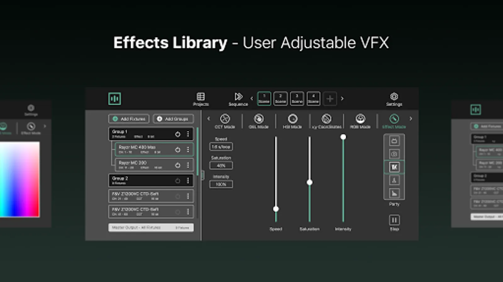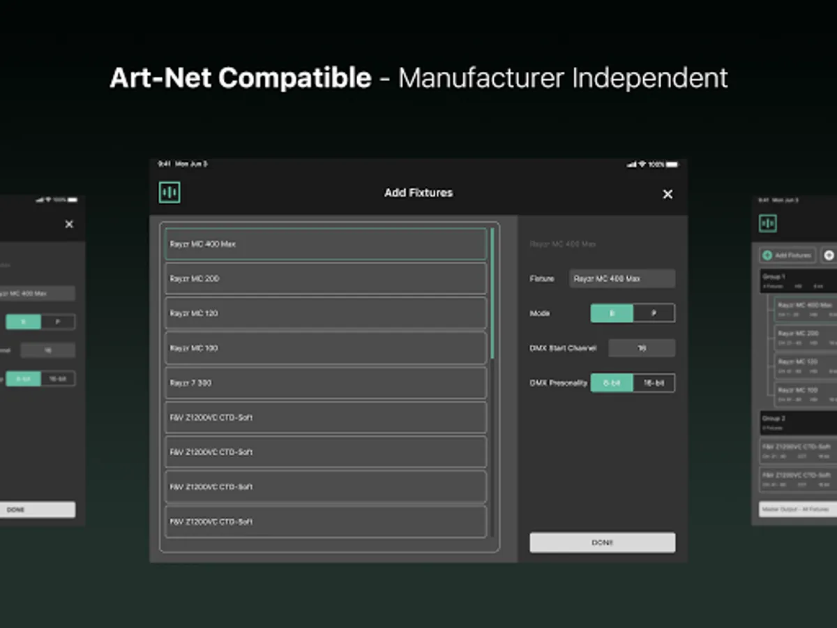 RTX Master allows you to control Art-Net compatible lighting fixtures from a variety of manufacturers like Rayzr, Vibesta, F&V through the RTX router or any other Art-Net compatible device.