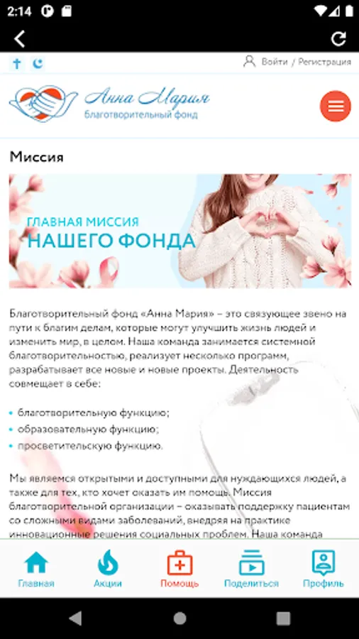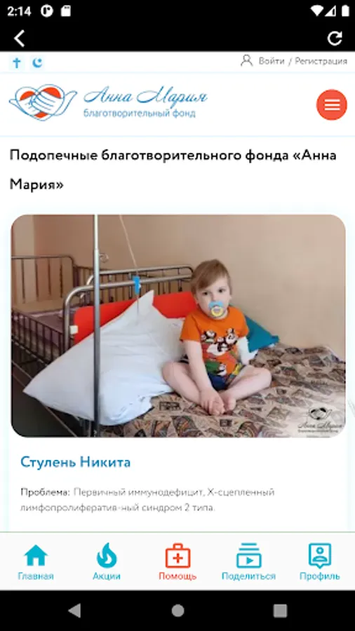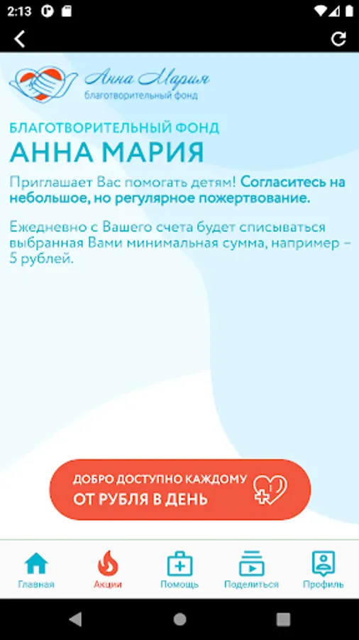 The Anna Maria Charitable Foundation has been operating since 2018. We provide assistance to seriously ill adults, children and the disabled, support creative and sports teams. For your convenience, we have created a digital fundraising service, thanks to which you can now make a donation anytime, anywhere, just using your smartphone. The translation is carried out promptly and without delay, in just a few clicks. The main mission of the fund is to implement a program to support the disabled, seriously ill adults and children, as well as creative and sports teams. At the moment we are implementing a wide range of social support programs. The work specializes in helping seriously ill children. We work with different diagnoses: SMA, cerebral palsy, congenital heart disease, epilepsy, encephalitis, other genetic diseases. Using the mobile application, you can: