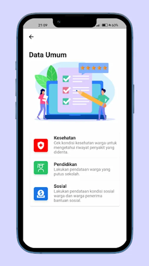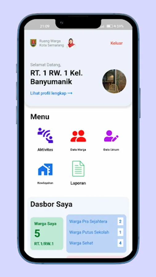 This application is used to report the performance of the Chairperson and Secretary of RT, RW, and LPMK