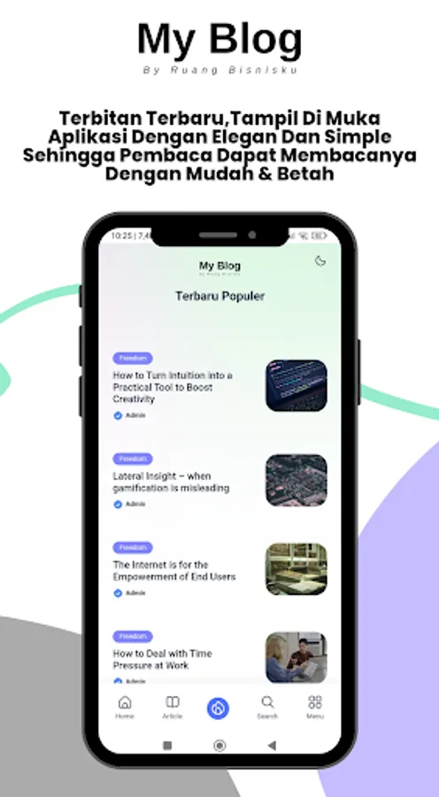 My Blog by Ruang Bisnis is an application designed to make it easier for users to create and manage blogs. This application is equipped with various features such as creating posts, setting the appearance of the blog, integration with social media, and so on. By using this application, users can easily write and publish articles, as well as interact with readers through the comments feature. Apart from that, users can also monitor the performance of their blog through the dashboard available in the application. My Blog by Ruang Bisnis is suitable for anyone who wants to start a blog and needs a tool that is easy to use and effective.