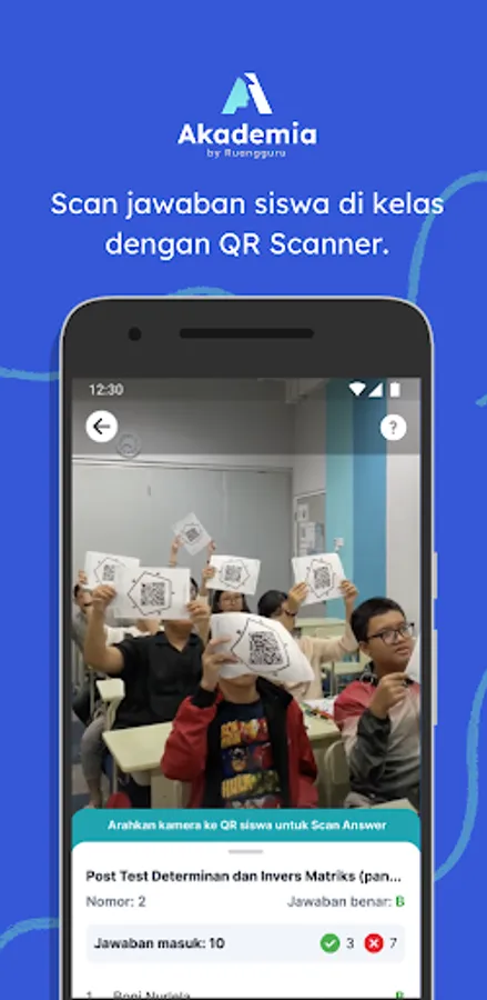 Now, you can conduct a question and answer session on practice questions in a fun and interactive way in class! Use the QR scanner to scan student answers instantly. Not only that, you can also directly monitor student grades in this application.
