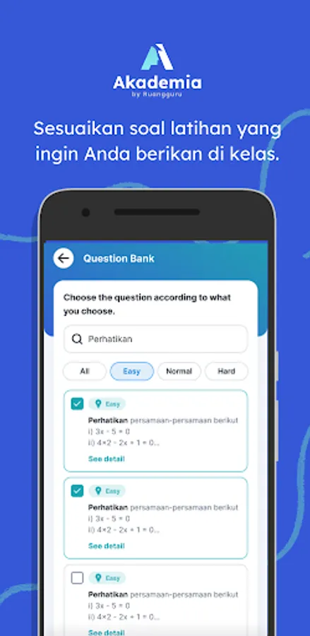 Improve the quality of learning with practice questions in the application. There are various questions according to the topic and subtopic you want. These practice questions are also available in various levels of difficulty! so you can choose the level of difficulty according to the level of understanding of students.