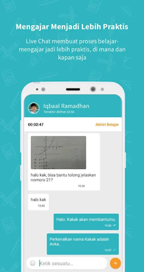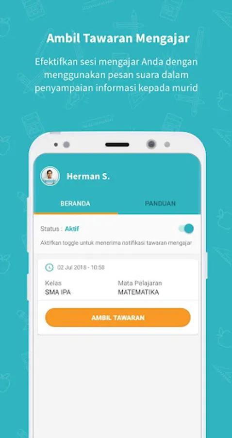 Ruangguru Teacher App is designed to bring together the best Indonesian teachers with students who need help in learning, performing chores such as exercise, test preparation, or doing homework that is considered difficult. By becoming a teacher in ruanglesonline feature, you can teach students from all over Indonesia anywhere and anytime directly from your mobile phone.