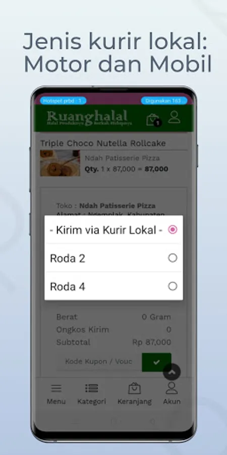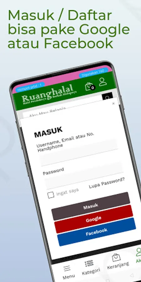 RuangHalal provides buying and selling facilities in the marketplace for products from individuals and MSMEs that have HALAL MUI certificates.