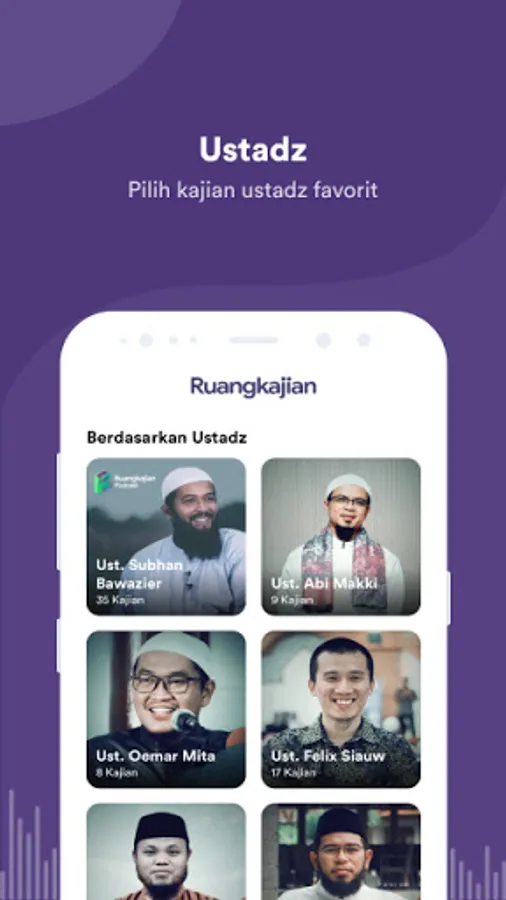 Study Room, Study Podcast Collection, Lectures from various Ustadz such as Ust. Subhan Bawazier, Ust. Abi Makki, Ust. Oemar Mita, as well as many more.