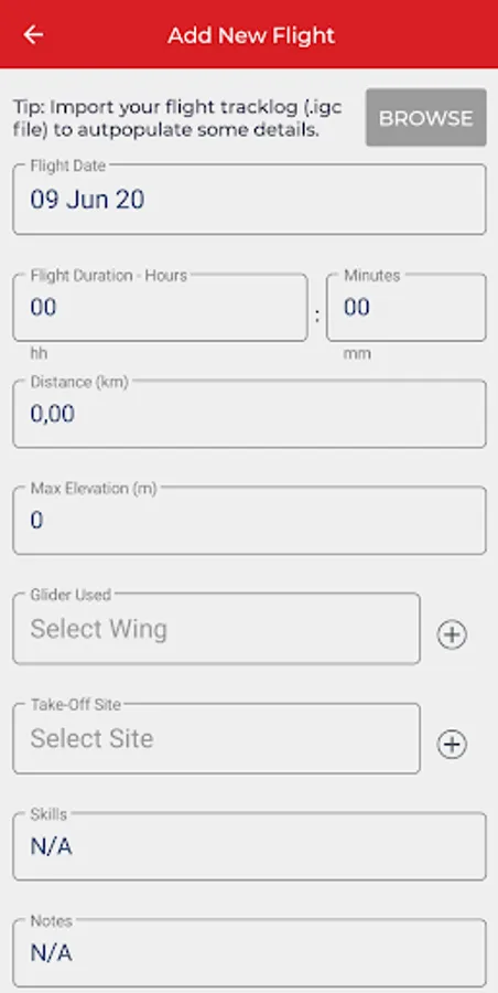 Carry-Forward totals from your previous logbook and continue your new logbook where your previous one ended. Specify total Solo Flights and Hours or for example Tandem Flights and Hours or PPG Flights and Hours, Hanggliding Flights and hours, etc. all in one application!