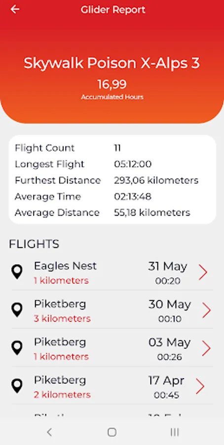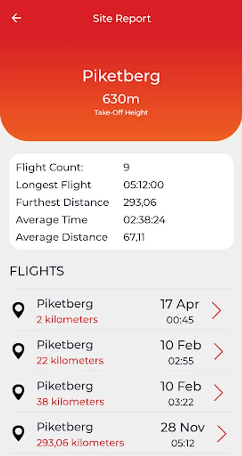 Keep record of your take-off locations and take-off height, and also view uniquely generated Reports for each site as you log more flights and update your Paragliding Logbook.