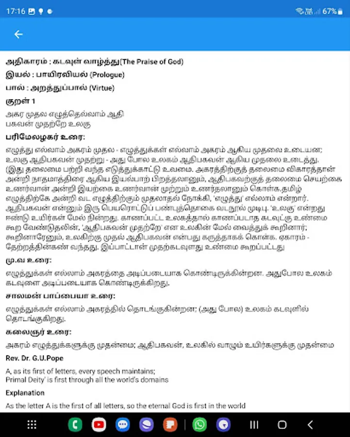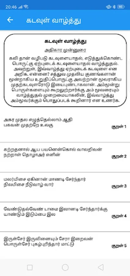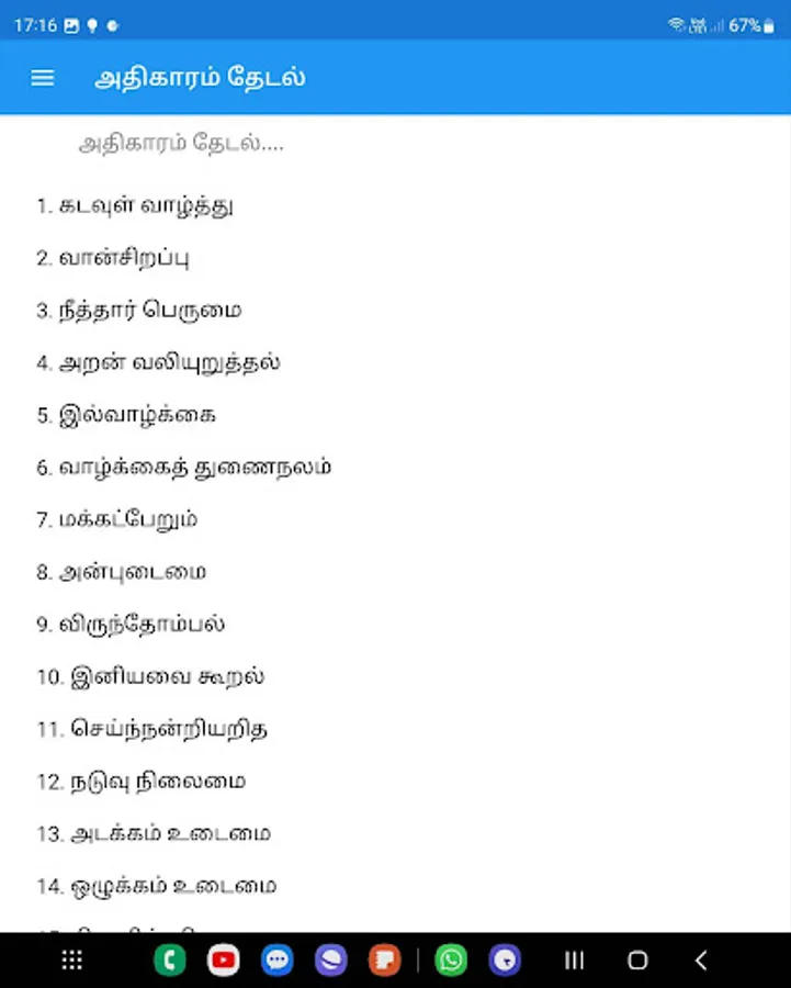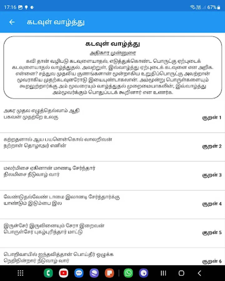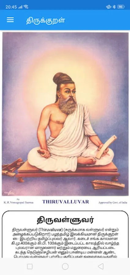 Thirukural is considered as the great guide for us to make our lives better. It is a collection of 1330 couplets organised into 133 chapters. Each chapter has a specific subject ranging from "ploughing a piece of land" to "ruling a country". It preaches simplicity and truth throughout its verses.