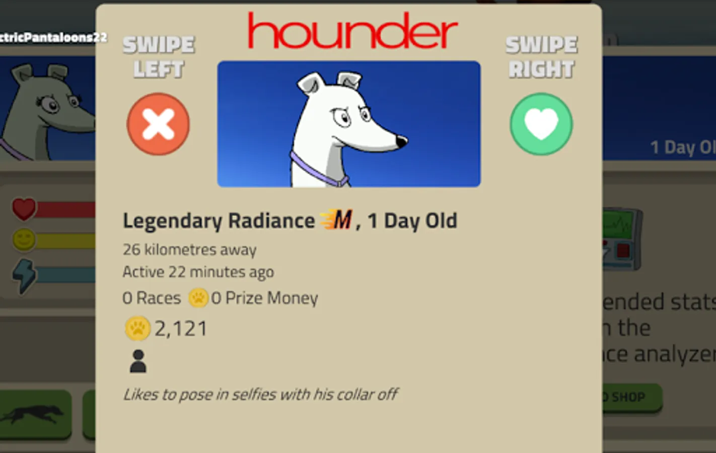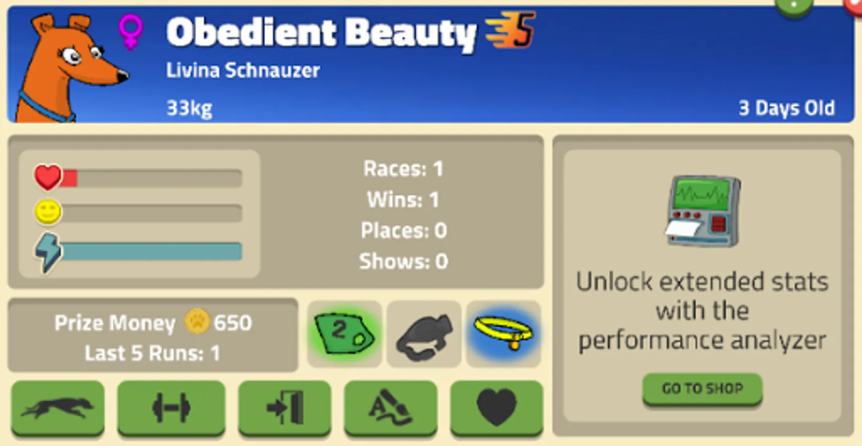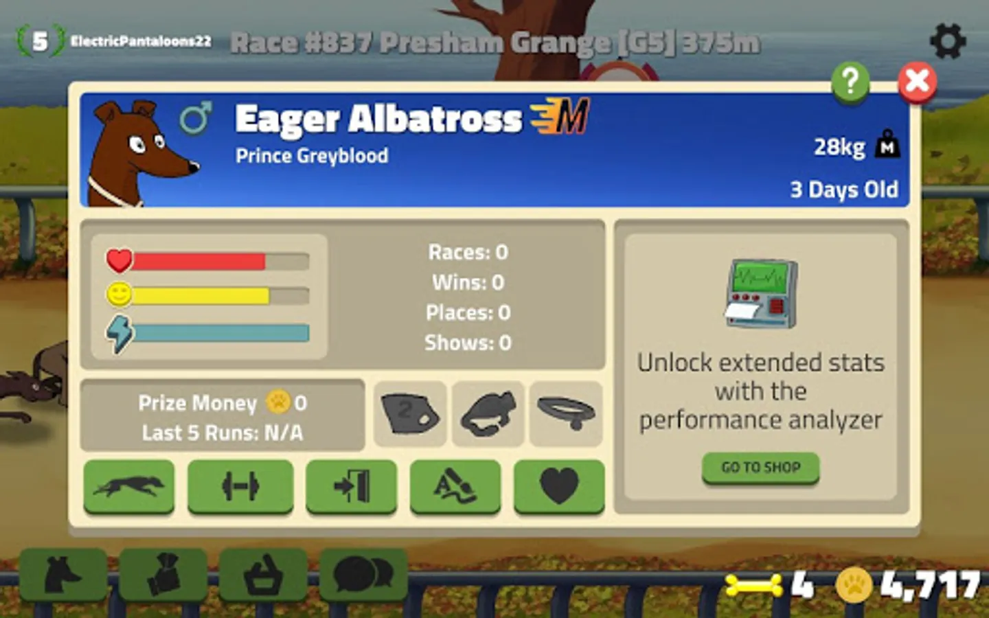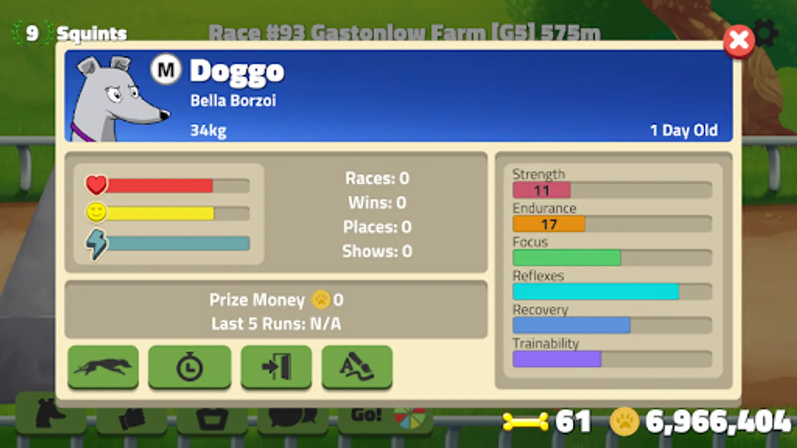 Save up your hard earned cash to buy your own hounds to race and generate income for you.