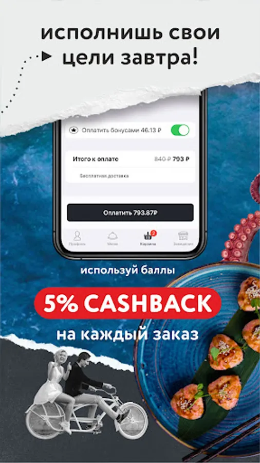 How to place an order in the “AYAMI” application: select the items you like from the menu, add them to the basket and go to the checkout screen (by clicking on the basket icon).